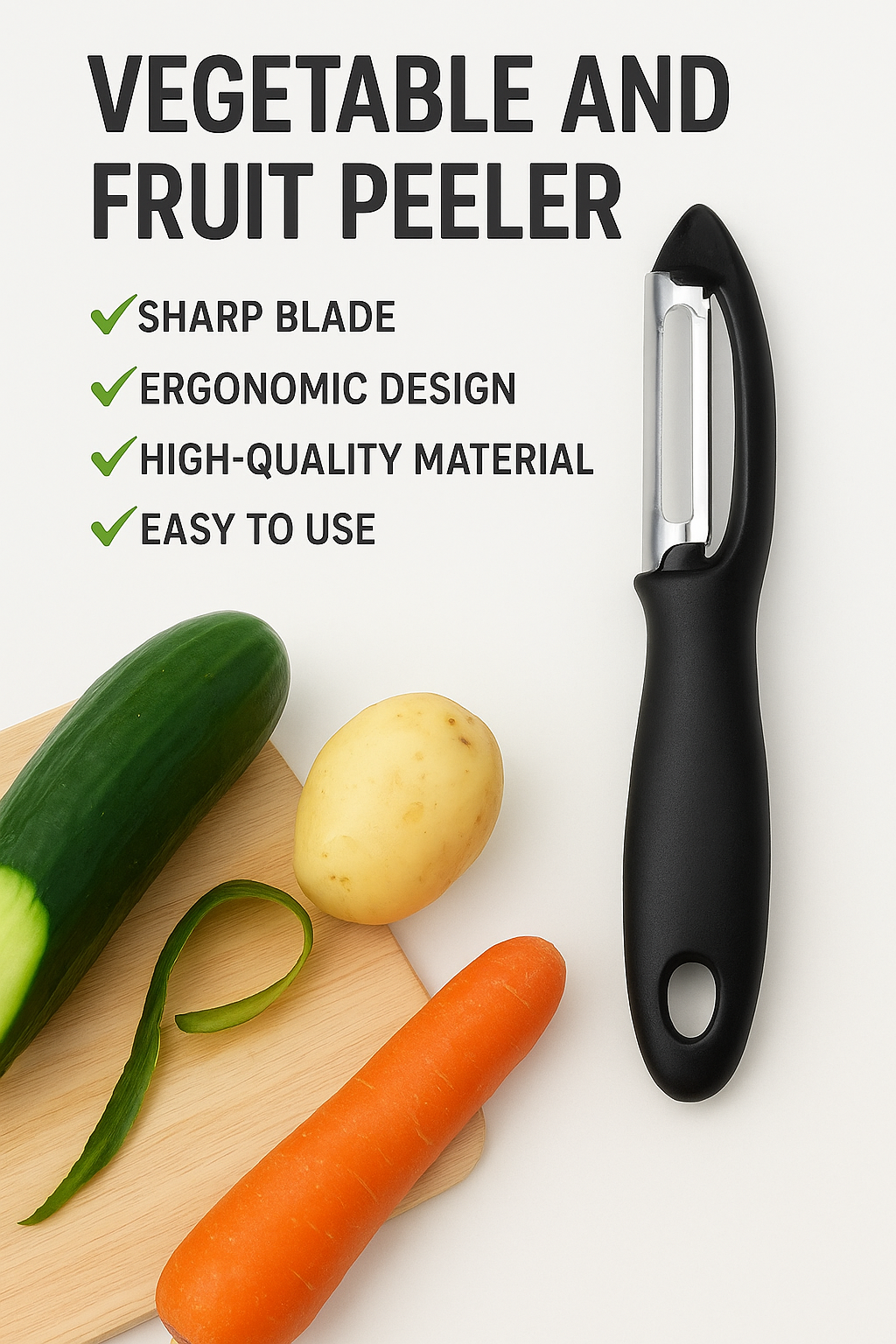 Yeh Vegetable Fruit Peeler aapke kitchen ka perfect helper hai. Iska sharp stainless-steel blade sabziyon aur phalon ko bilkul smooth aur fast peel karta hai. Ergonomic non-slip handle ki wajah se haath me solid grip milti hai, jisse cutting aur peeling dono safe rehta hai. Yeh har tarah ki vegetables jaise potato, cucumber, carrot, bottle gourd, beetroot aur fruits jaise apple, pear, papaya ko aasani se peel kar deta hai. Light-weight aur long-lasting design ise daily kitchen use ke liye ideal banata hai. online payment ( cash on delivery not available) online payment accept. This product . Non return able product