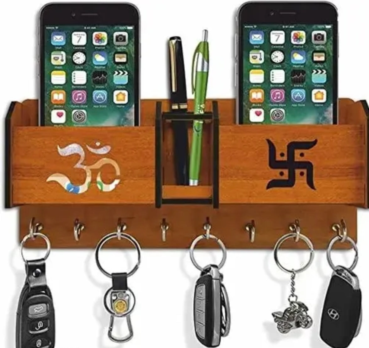 A Key Chain Hanger is a stylish and practical home accessory made to keep your keys organized and easily accessible. It is usually made from wood, metal, or durable plastic and includes 4–6 strong hooks. The hanger can be installed on any wall using screws or double-sided tape.